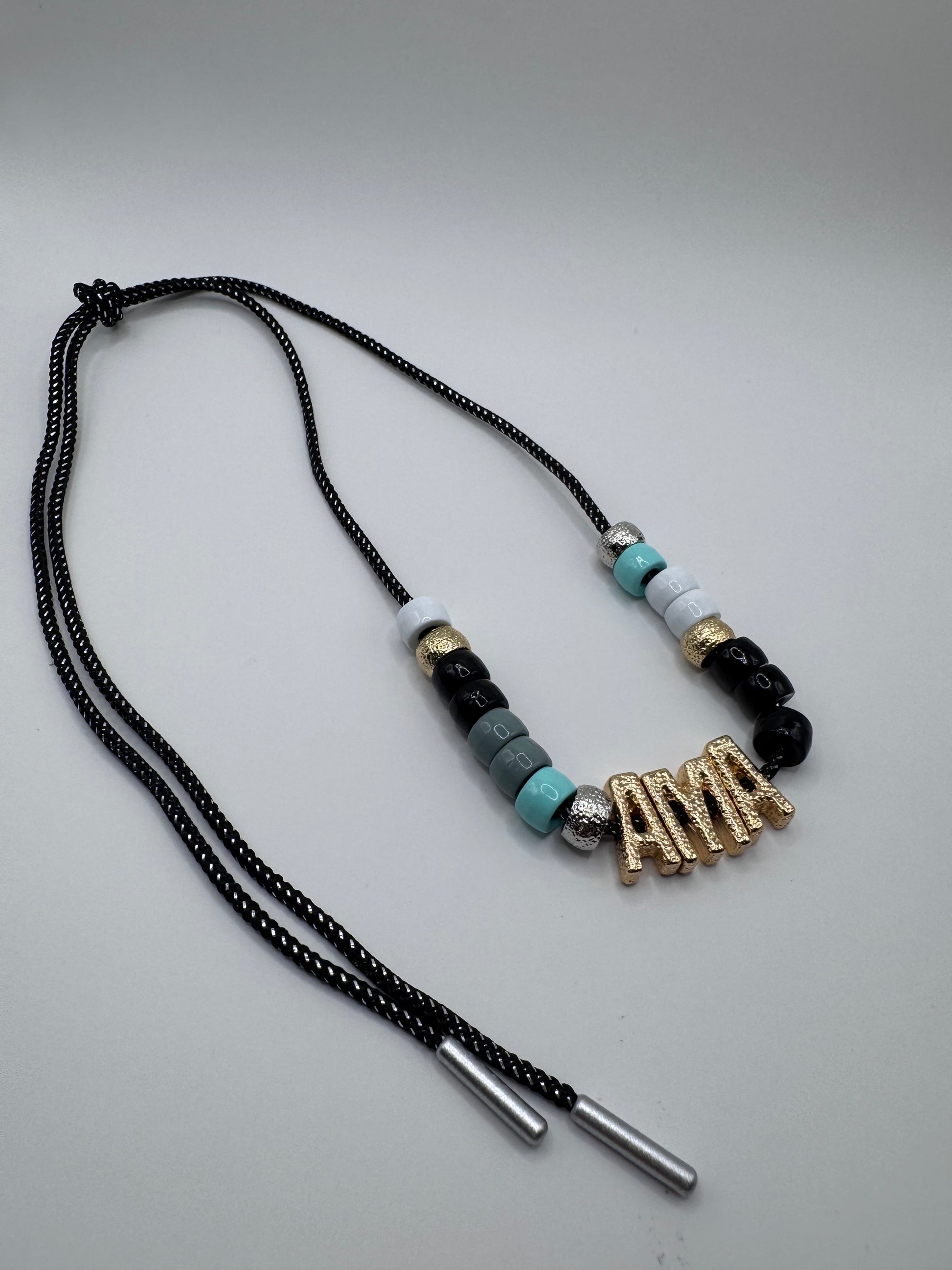 The Bold Beads necklace is a customizable piece designed for joy. Featuring chunky, colorful beads and metallic accents on a soft cord, it’s a playful nod to self-expression and carefree style.